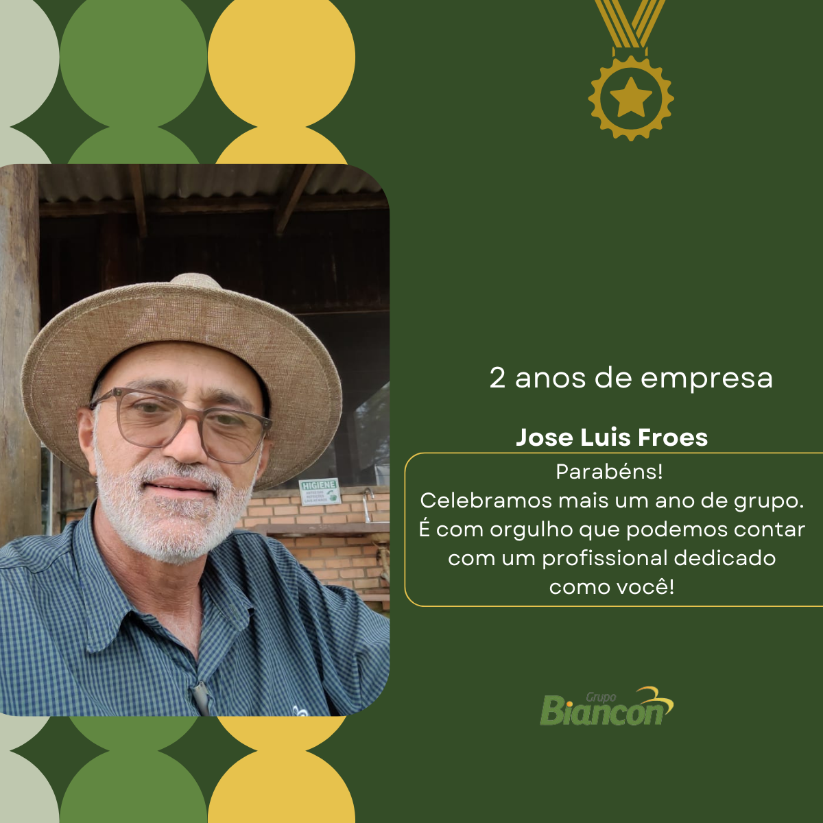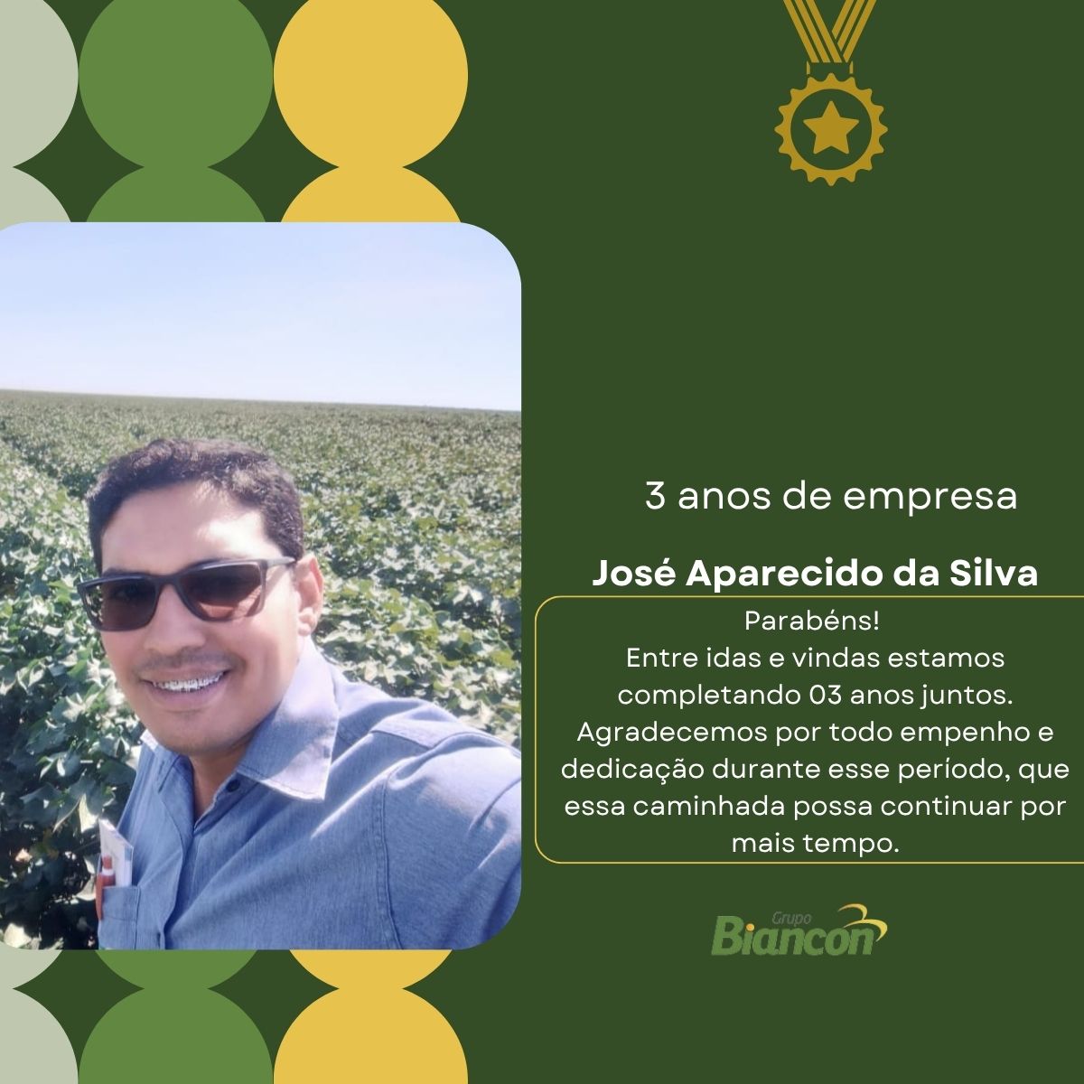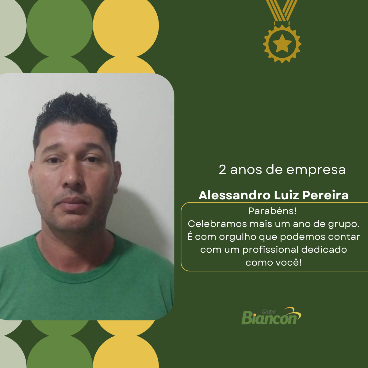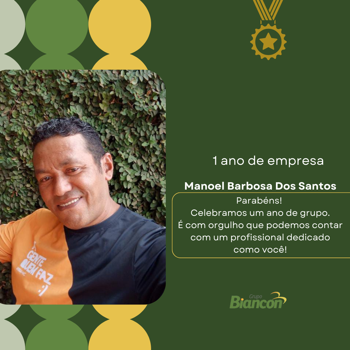 É com muita alegria que nós do Grupo Biancon celebramos essa caminhada. Parabéns aos colaboradores pelo Tempo de Empresa.