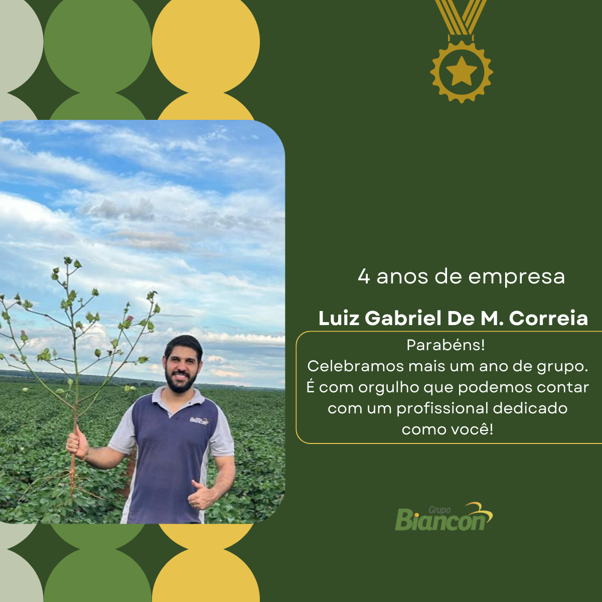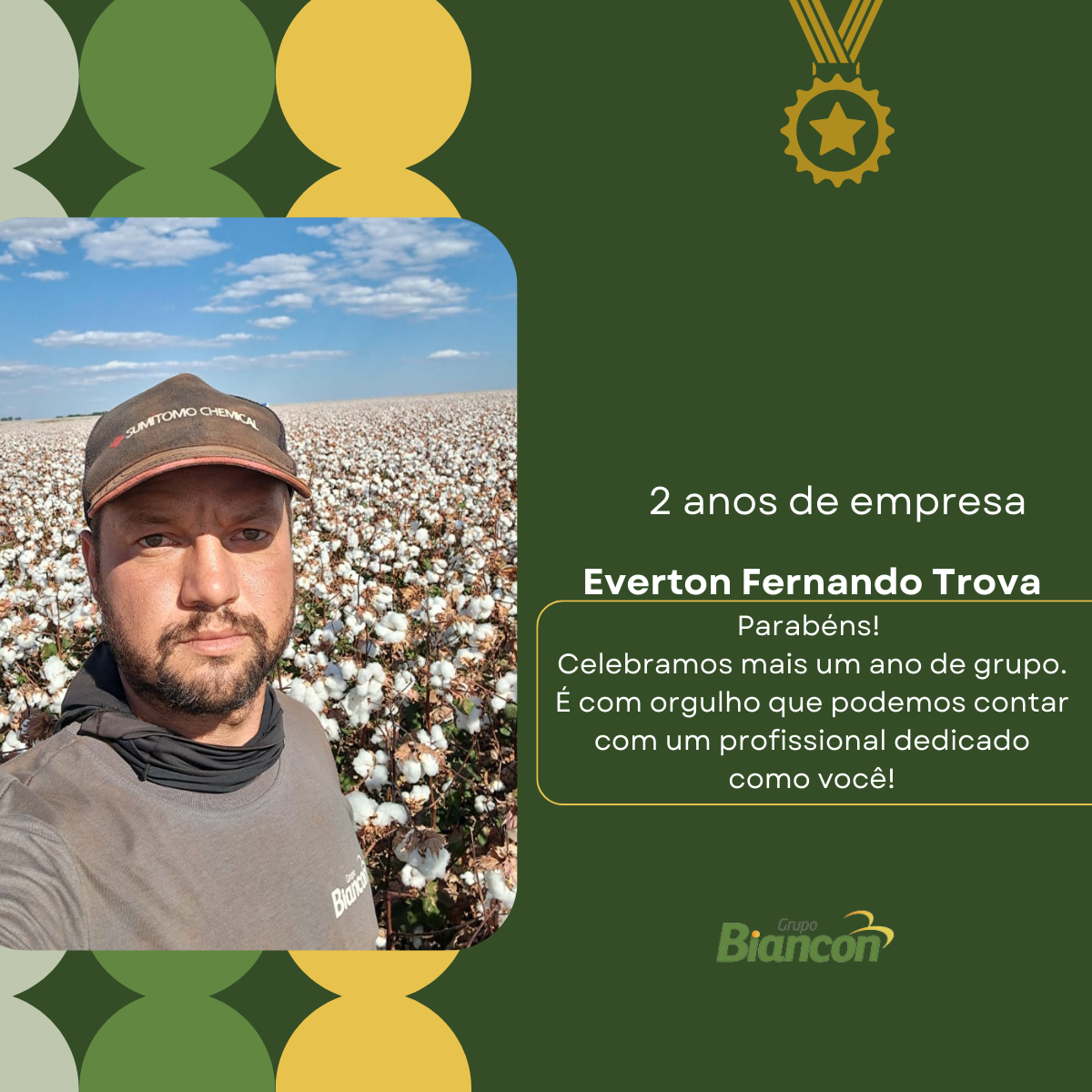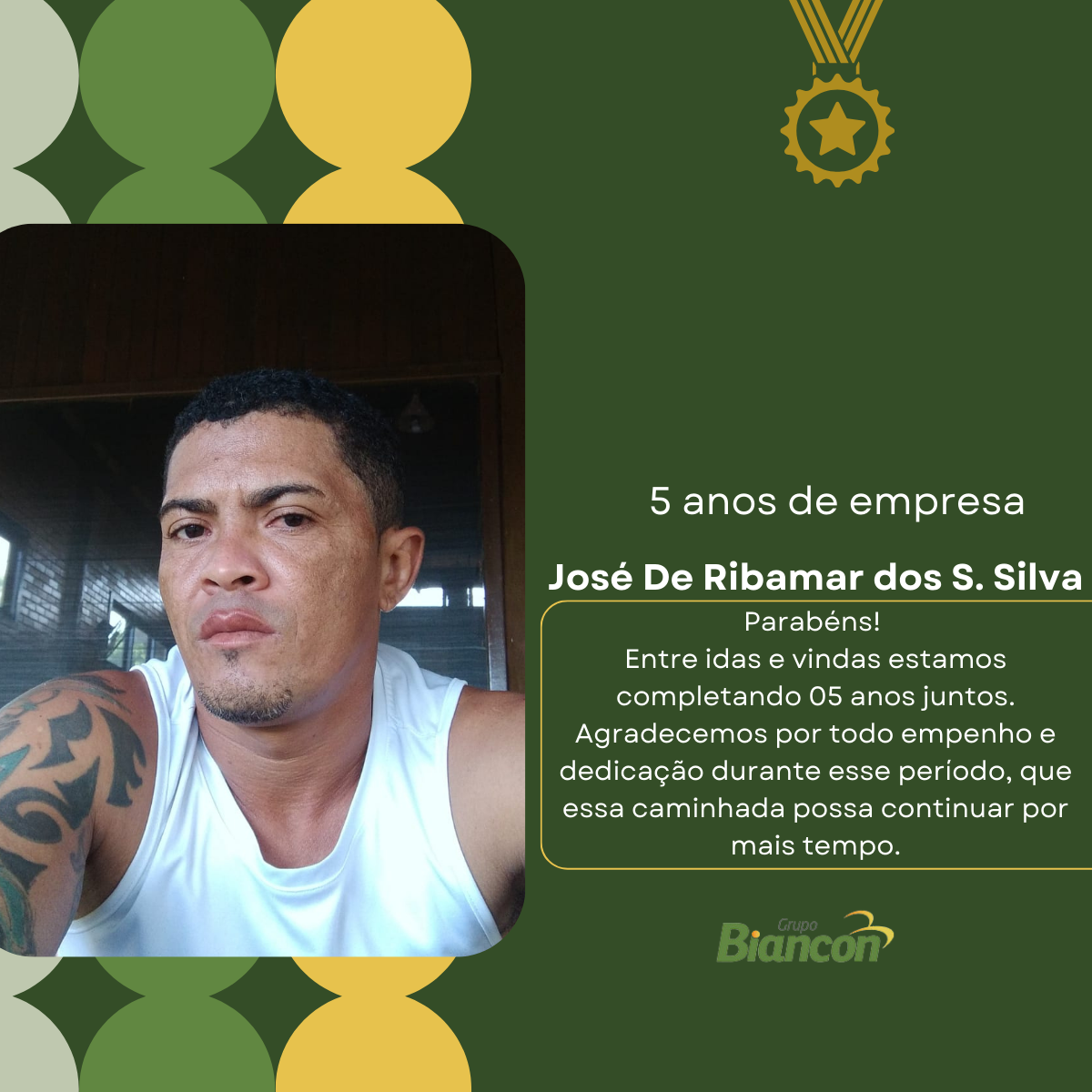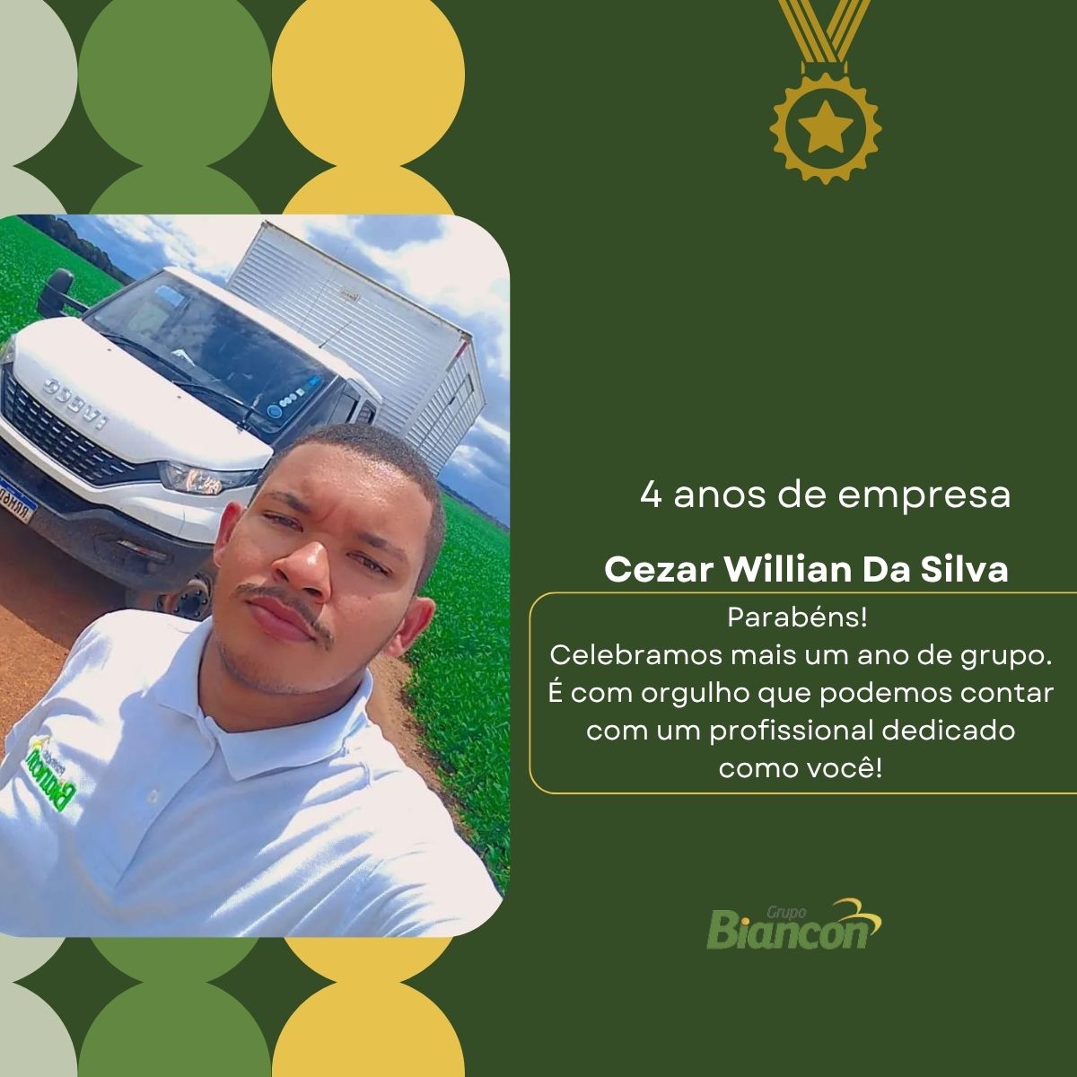É com muita alegria que nós do Grupo Biancon celebramos essa caminhada. Parabéns aos colaboradores pelo Tempo de Empresa.