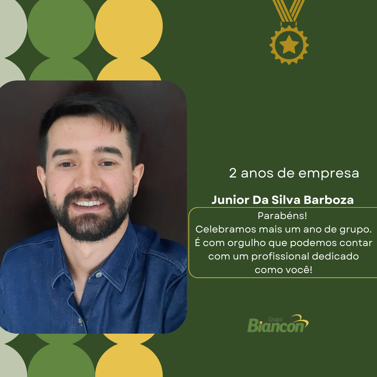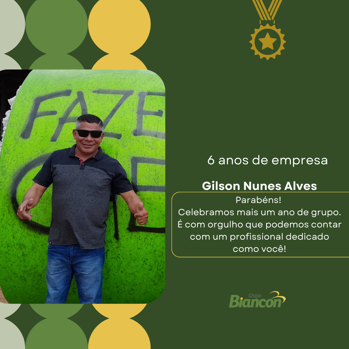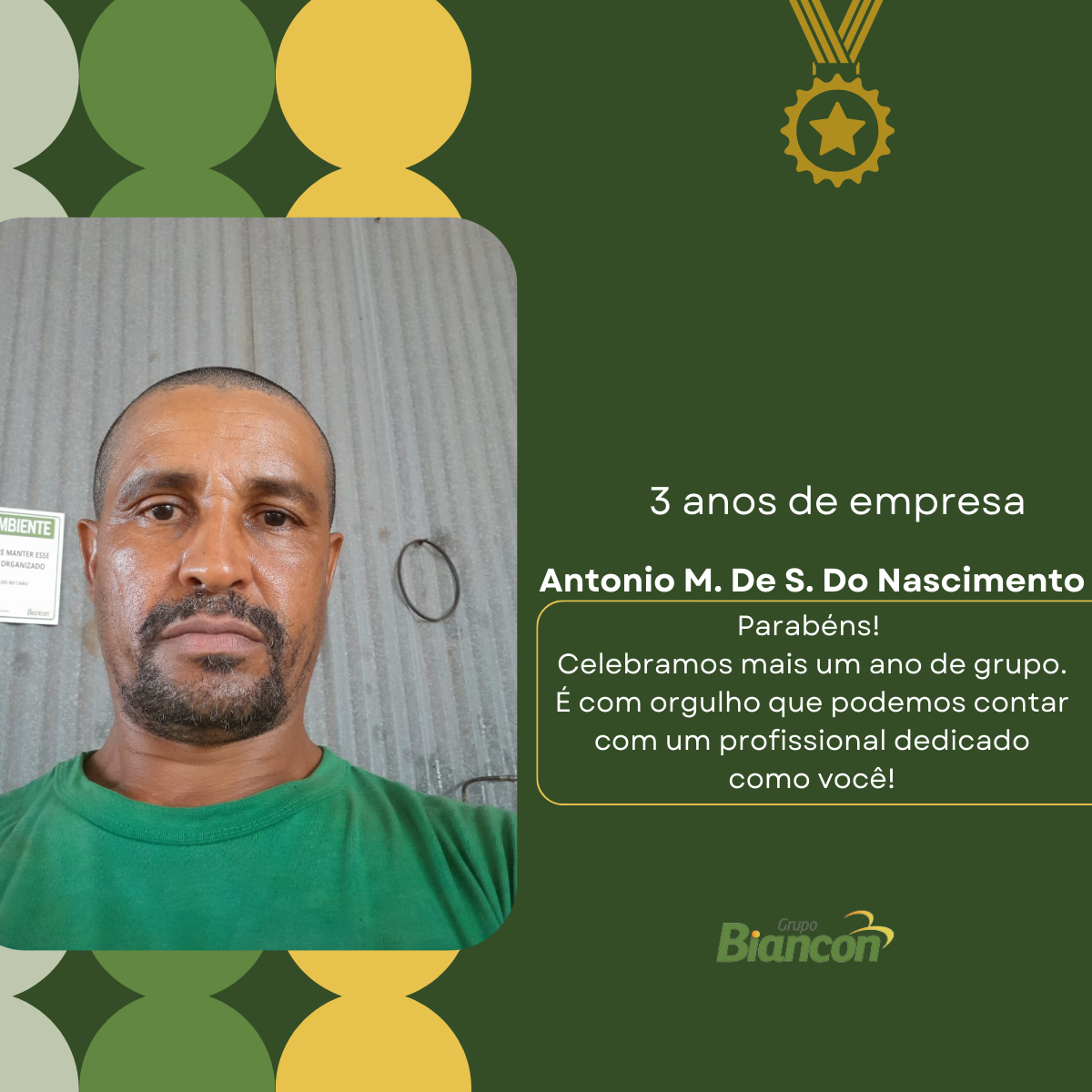 É com muita alegria que nós do Grupo Biancon celebramos essa caminhada. Parabéns aos colaboradores pelo Tempo de Empresa.
