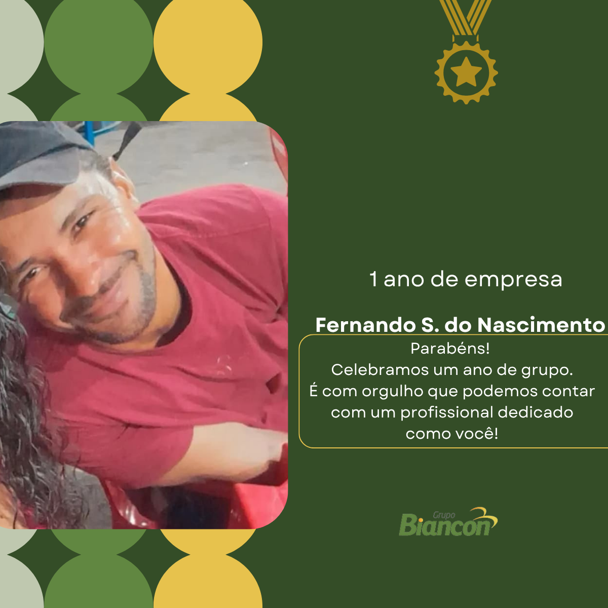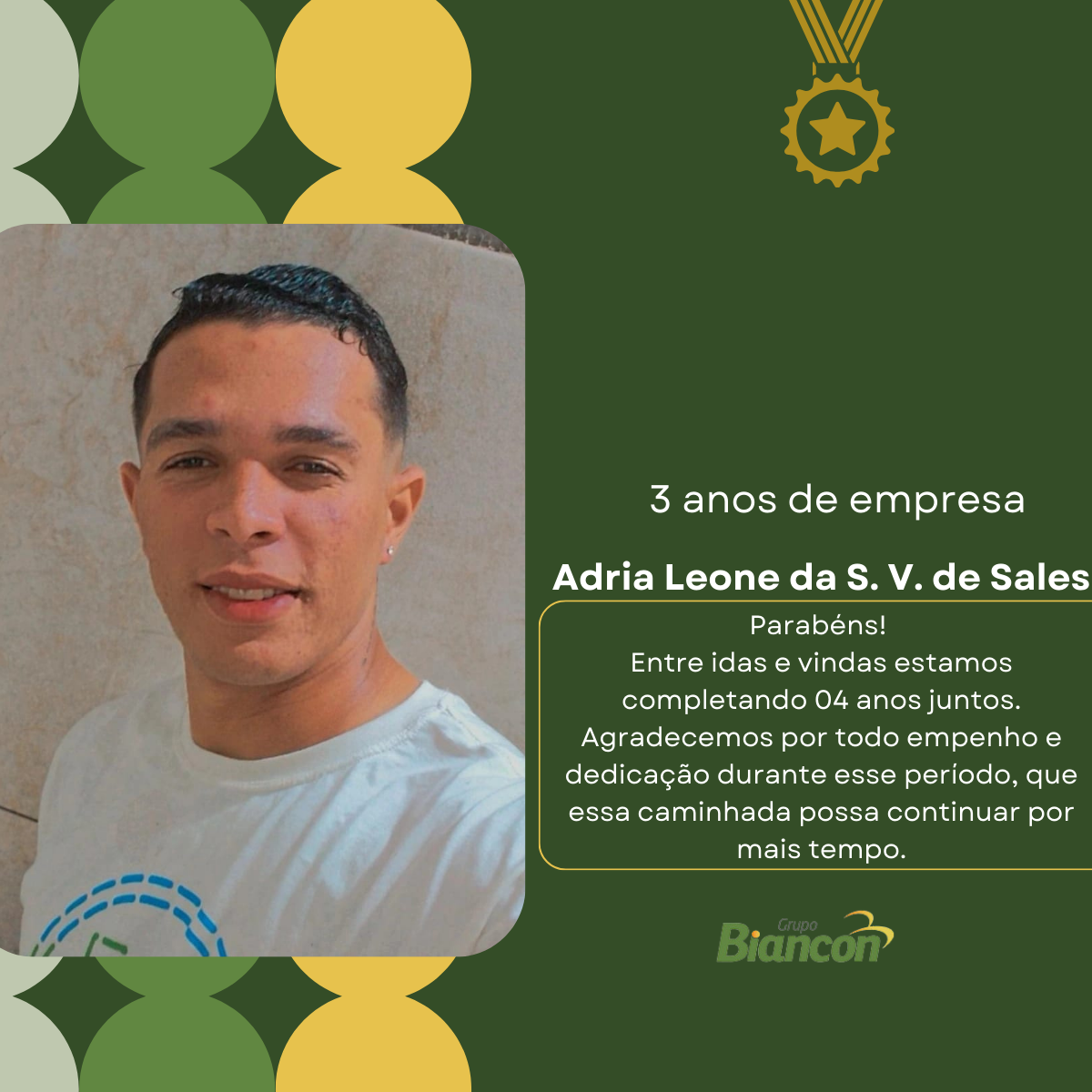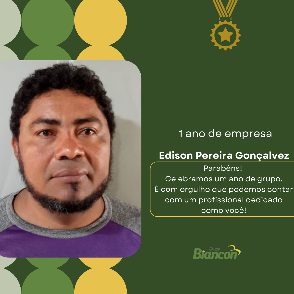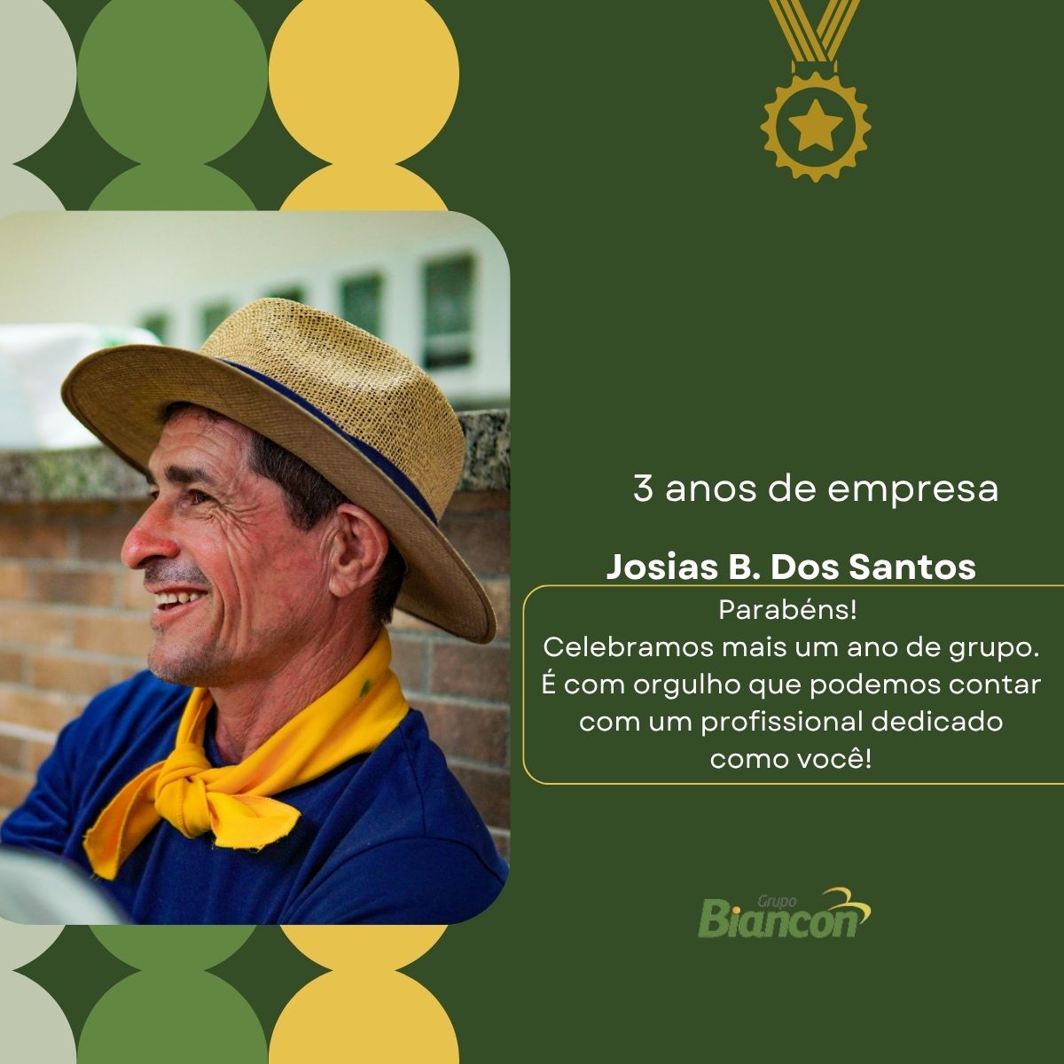 É com muita alegria que nós do Grupo Biancon celebramos essa caminhada. Parabéns aos colaboradores pelo Tempo de Empresa.